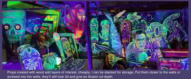 What makes a Haunted House awesome is layers. It adds a sense of depth, a sense of height. Wood can give you those layers, add to the outside as design details and on the inside as props.