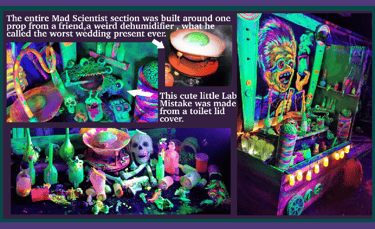 The 'Mad Scientist Table' was started by a neighbors donation of a weird wedding gift, and evolved into 'The Mad Scientists Alley'.