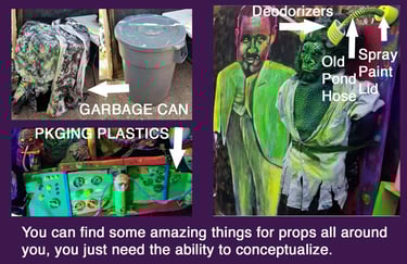 I'm always on the lookout for odd shaped things and save them for possible use. Be choosy. I'm careful about what I save, you don't want to be a packrat, you'll need that storage for Haunted House stuff!