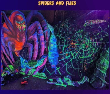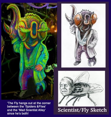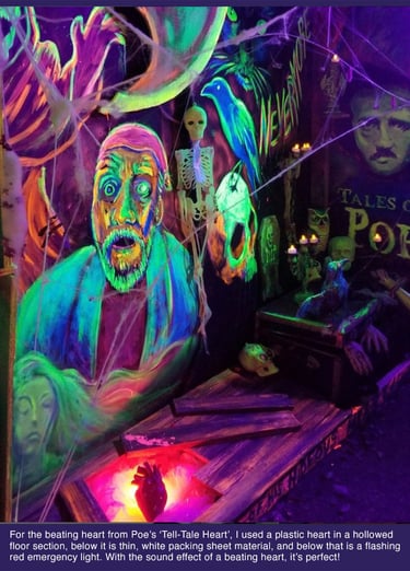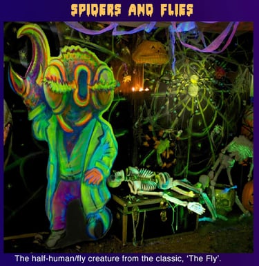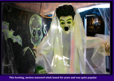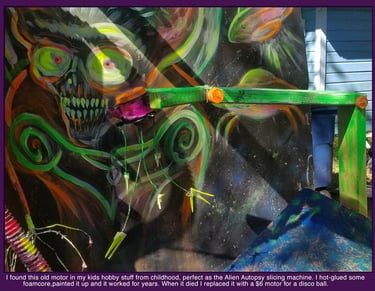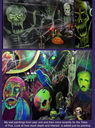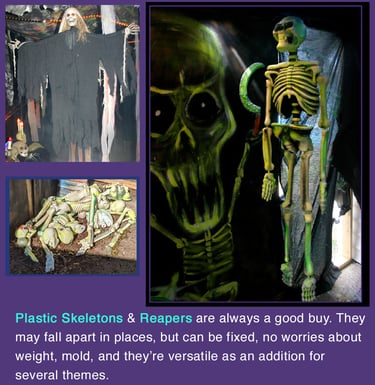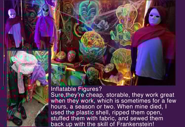 I try to have a few animatronics, at least one in each area. These add volume, shape, interest, and most importantly, movement. This is a 'jump-scare-free-zone'. So movement is needed for balance and enjoyed without it being extreme.