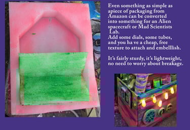 I used resale & scrap wood, I build and rebuild, re-glue and screw. I try to think of any way I can use something before I cast it aside. This lightens the financial aspect of Haunted House making considerably. And my environmental impact is always foremost on my mind, so I feel better working with scrap that was destined for a landfill. And I've found some unique ways to reuse things that I never would have thought about if my first instinct was to toss it.