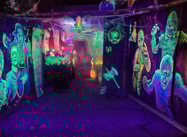 My second Haunted House was in Boston, in my late 20’s where we created a 'Haunted Hallway' in a 3-story Victorian house we rented with two other couples. We pooled together about $200, and it was enough. Oddly, each long stairway had an apartment with several doors to pop out of or just leave closed (equally terrifying, apparently) with dry-ice and black-lights topping off the effect. It was a raving success and kids talked about it all year. Honestly, it took me by surprise how much of an impact it had. I could see myself at age 5 in real time, because there I was in these kids. I could see the wheels of wonder turning in their minds exactly as it did in my younger self. They were experiencing the gift of the sublime.