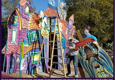 It was a great success that year and since then I've been developing the sections and increasing the magic! There's been several articles about it, movies created and memorable stories. Some neighbors even started their own traditions, Halloween displays, Haunted Houses, and an awesome Halloween Pet Parade. But it wouldn't have happened without all the help and support from neighbors. The donations of weird objects, the sharing of hard work and of expertise, the friendships made. Skyview truly is the best kept secret in Austin and I'm lucky to be a part of the community.