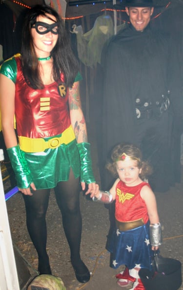 As with Haunted Houses, families grow too, and somewhere in that time, mine grew by one, a daughter, an October baby, and one genetically predisposed to be a lover of Halloween. Her Haunted House bday party became part of the yearly tradition. In her twenties and in college, the holiday still bonds us, and she wants to know about every new detail, when she finally calls me back.